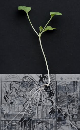 Tokyo-based artist Koshi Kawachi recently demonstrated his “Manga Farming” technique — which uses old manga as a growing medium for vegetables — by cultivating a crop of radish sprouts in an installation at the Matsuzakaya department store in Nagoya.